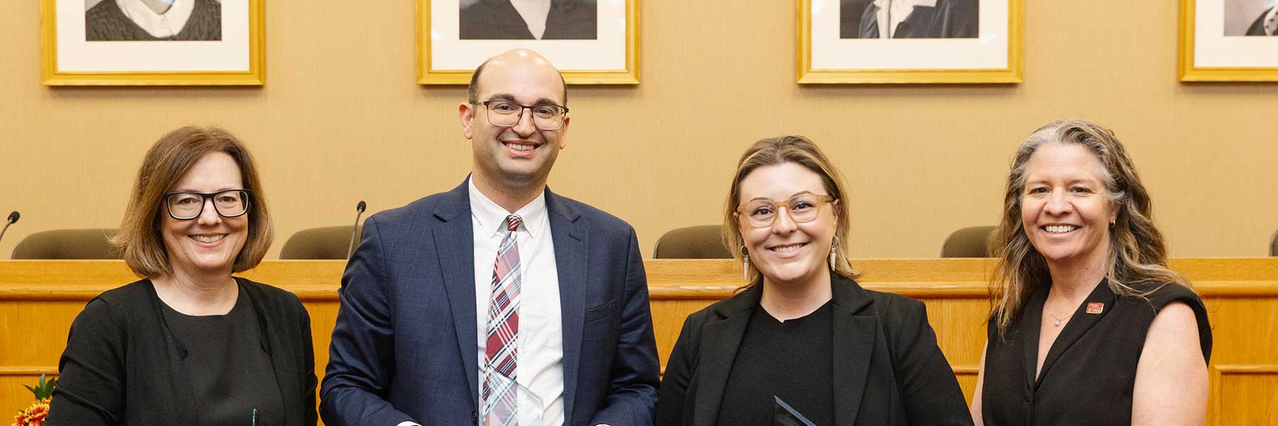 “The Law School is proud to present Distinguished Service Awards to three of our outstanding alumni,” said Indiana Law Dean Christiana Ochoa. “Matt, Delanie, and Hannah have each represented our school and the legal profession with skill and integrity and a consistent ethos of service. I’m particularly proud to see two of our more recent alumni receive this award, a testament to how quickly our graduates are making a difference in their respective communities.”